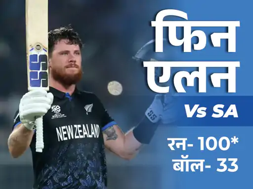 फिन एलन ने 33 गेंदों में नाबाद 100 रन की पारी खेली और टी-20 वर्ल्ड कप इतिहास का सबसे तेज शतक भी अपने नाम कर लिया।