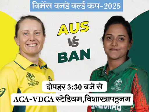 विमेंस वनडे वर्ल्ड कप में आज ऑस्ट्रेलिया और बांग्लादेश आमने-सामने होंगी। विशाखापट्टनम के डॉ वायएस राजशेखर स्टेडियम में मुकाबला दोपहर 3 बजे शुरू होगा। टॉस दोपहर 2.30 बजे होना है। ऑस्ट्रेलिया के लिए अपनी लय बनाए रखने का मौका है, वहीं बांग्लादेश की नजर किसी बड़े उलटफेर पर होगी।