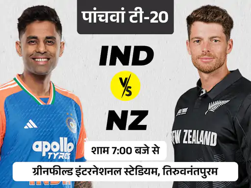 भारत और न्यूजीलैंड के बीच खेली जा रही पांच मैचों की टी-20 सीरीज का आखिरी मुकाबला आज तिरुवनंतपुरम के ग्रीनफील्ड स्टेडियम में खेला जाएगा। मैच शाम 7:00 बजे से खेला जाएगा, जबकि टॉस शाम 6:30 बजे होगा।