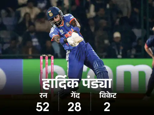 भारत ने नामीबिया को 93 रन से हराकर टी-20 वर्ल्ड कप में अपनी सबसे बड़ी जीत दर्ज की। टीम ने इस फॉर्मेट में 47वीं बार 200+ स्कोर का आंकड़ा पार किया। वहीं हार्दिक पंड्या ने 109 मीटर लंबा सिक्स लगाया।