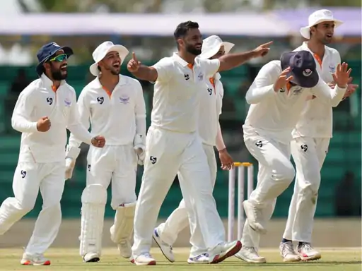 विपक्षी टीम के तेज गेंदबाजों ने नई गेंद से स्विंग और सीम मूवमेंट का बेहतरीन इस्तेमाल किया। स्पिनरों ने भी मध्य सत्र में रन गति पर अंकुश लगाया और महत्वपूर्ण विकेट निकाले। अनुशासित लाइन-लेंथ और लगातार दबाव के कारण कर्नाटक की टीम 300 रन का आंकड़ा पार नहीं कर पाई।